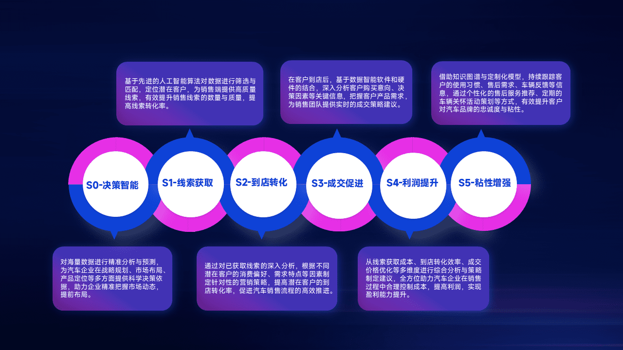 通过拓宽潜在客户来源、、、、优化线索分配并提高到店转化率,,,以增强销售效率。。同时,,利用线索数据不断优化分析模型,,有效提升转化率,,扩大营销影响力。。。